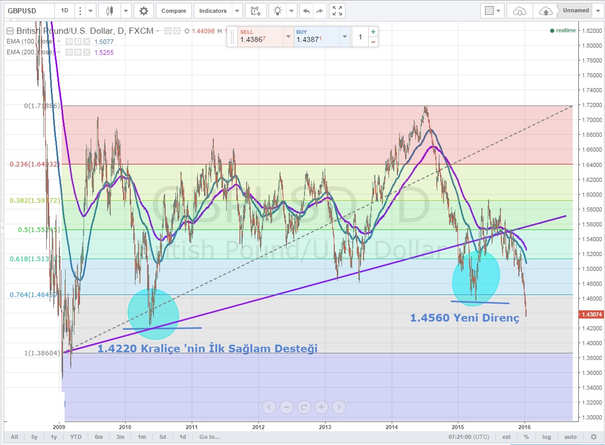 İlk destek ise 1.4220 seviyesinde .Burası da kırıldığı durumda Cable için 1.35 seviyelerinin önü açılacaktır