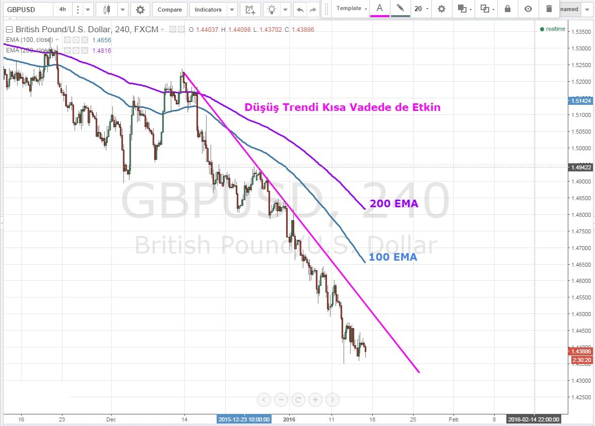 Daha kısa vadeye indiğimizde ise yine düşüş trendi oluştuğu ve paritenin 200 EMA ve 100 EMA baskısı altında hareket ettiğini görüyoruz