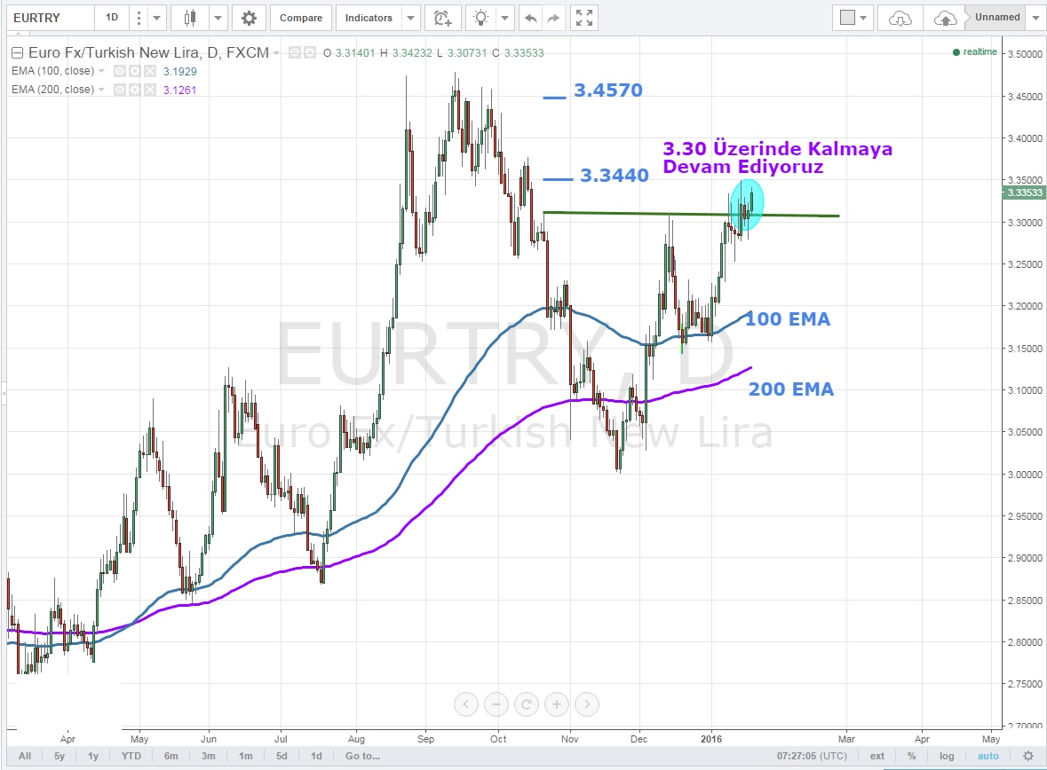 Günlük grafiklerde bizim için önemli olan 3.30 seviyesi üzerinde kapanışlar gerçekleştiği sürece paritede yükselişin devam edeceğini düşünüyorum