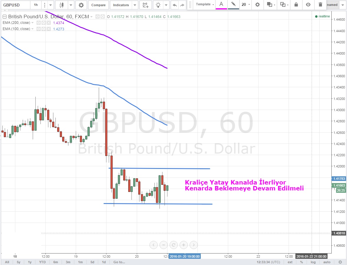 Üçgen formasyonunu bozan parite yatay kanalda hareketine devam ediyor .Bugün TSİ 15:30 'da ABD 'den gelecek Çekirdek TÜFE verisi -Beklenti % 0.2 kanalın bir yöne kırılımını sağlayabilir