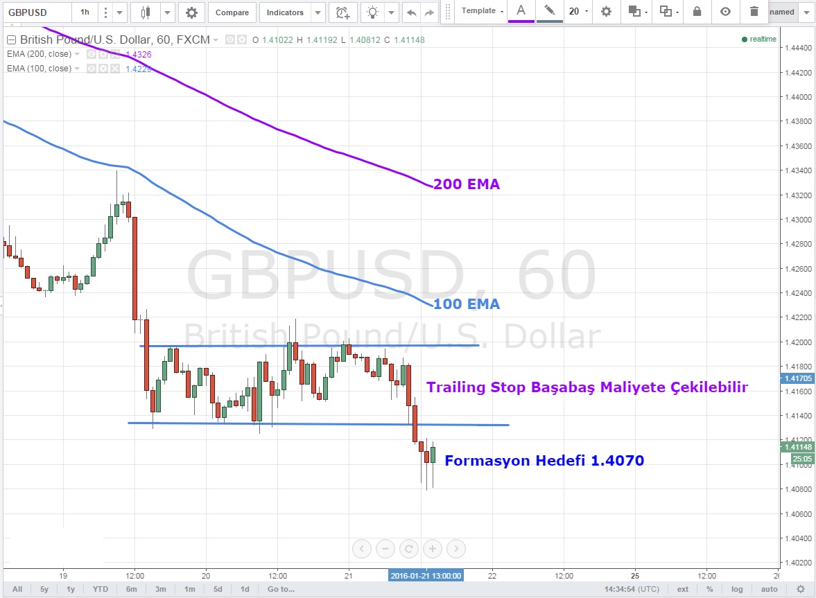 GBPUSD için ECB öncesi konuştuğumuz ve 1.4070 hedefi verdiğimiz pozisyon için trailing stop seviyelerini başabaş maliyete çekerek riski sıfırlıyoruz