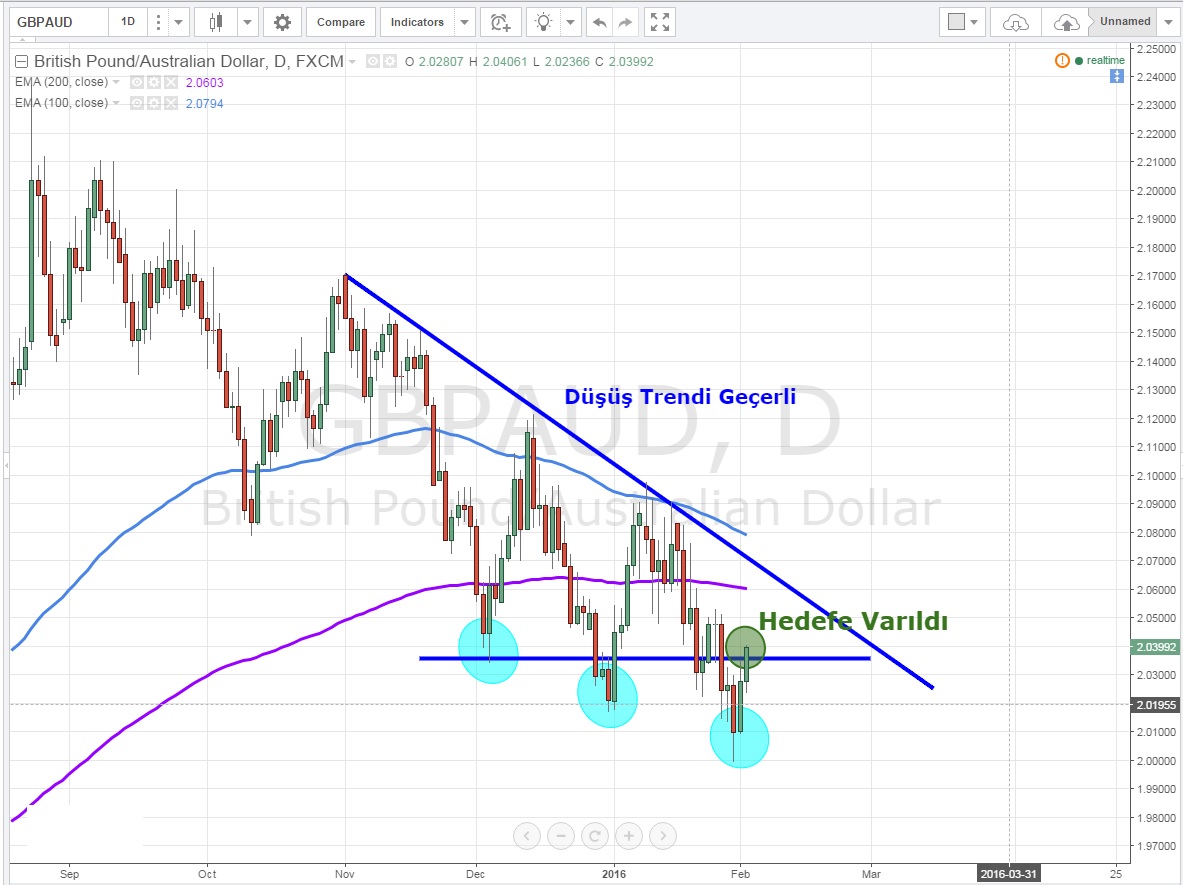Dün GBPAUD için konuştuğumuz 2.0320 hedefine vardık ve pozisyon kapandı .Yükselişin devam ettiği paritede potansiyel devam etse de düşüş trendini dikkate alarak bir süre izlemeyi tercih ediyorum