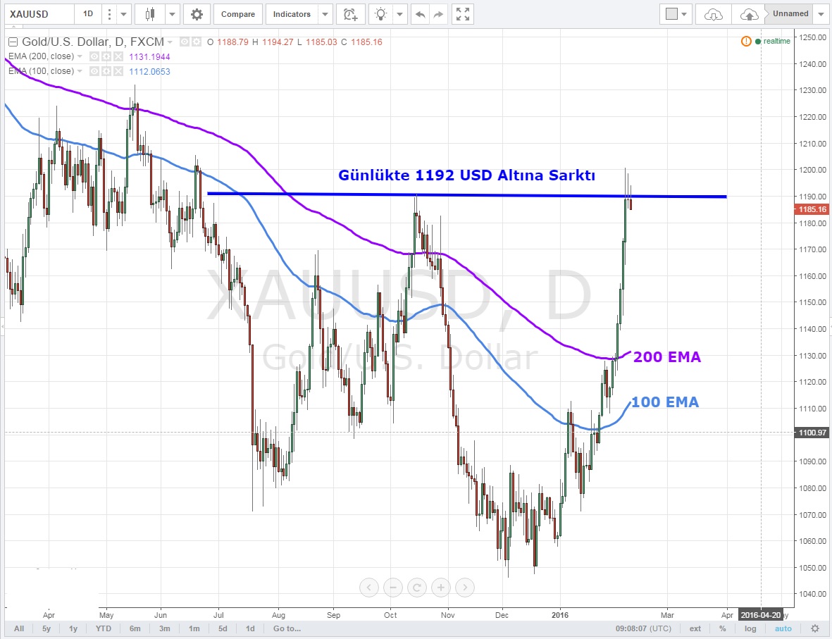 Bu durumda 1192 altında kapanış yaptığı sürece sarı metal akşam TSİ 17:00 'de Janet Yellen 'i 1174 ve 1170 USD seviyelerinde karşılayabilir