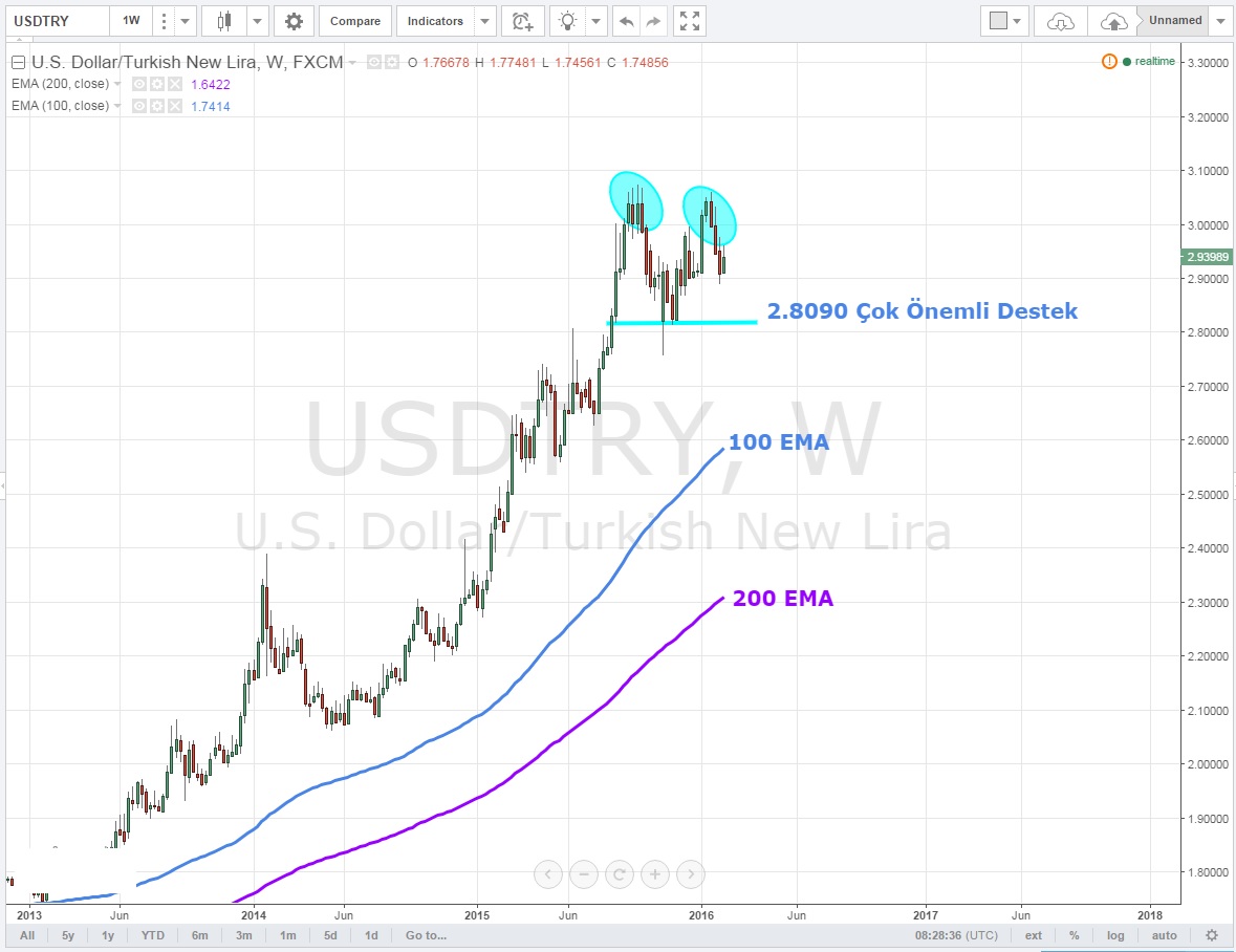 Haftalık grafiklerde 2.8090 çok önemli destek ve kırılmadığı sürece orta vadeli kısa pozisyon açmak iyi bir tercih değil