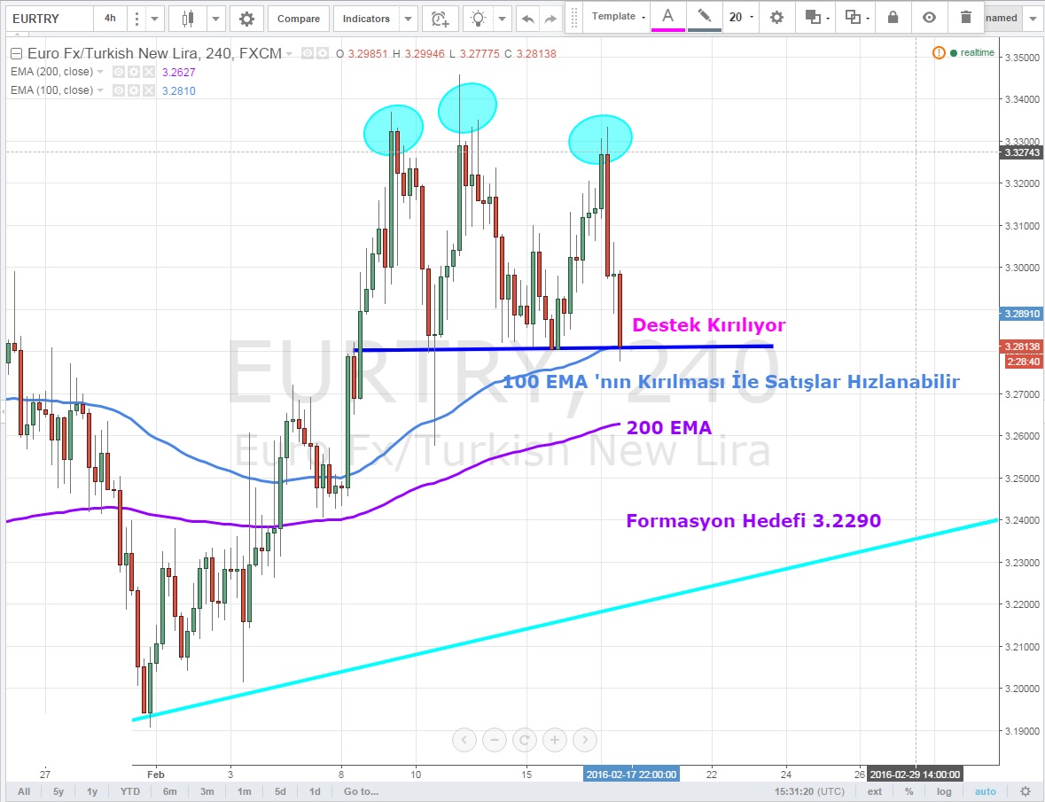 Bu desteğin altı kapanışlarda satış hızlanacaktır .Paritede kısa pozisyon almak isteyenler 3.2670 ve 3.2290 hedefli pozisyon açabilir
