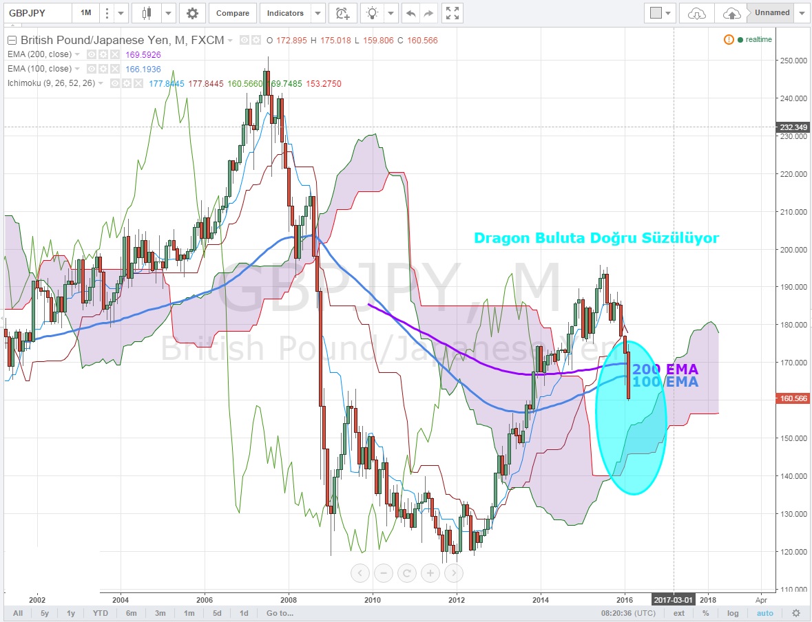 Aylık grafikelrde Ichi Moku bulut desteğine hızla pike yapan Dragon 'un