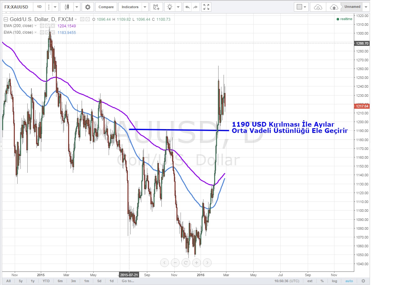 Orta vadeli grafiklerde 1190 desteği kırılmadan kalıcı düşüşlerden bahsetmek için erken olabilir .1190 USD altında kapanışlarda piyasada tekrar ayılar üstünlüğü ele geçirecektir