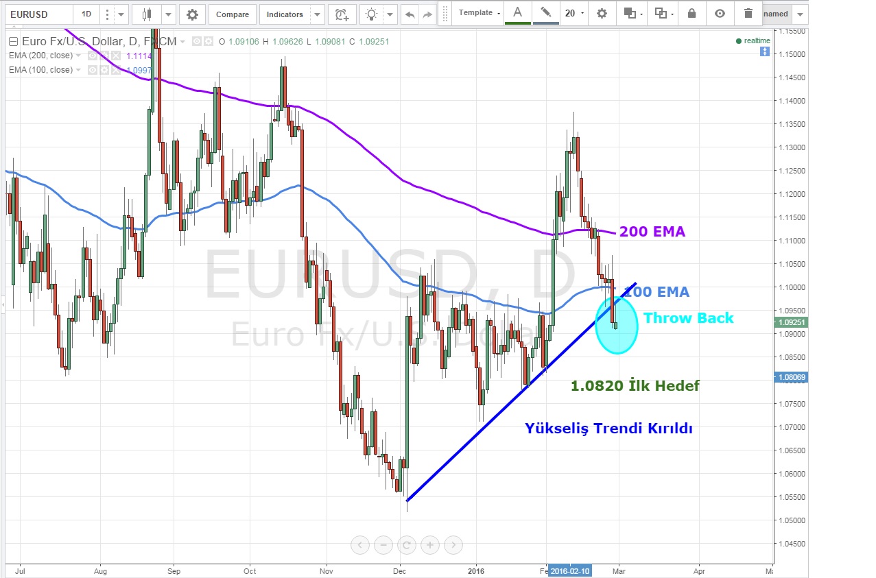 Saatlik grafiklerde kısa vadeli yükseliş trendi desteğinde olan EURUSD 1.0920 seviyesini de aşağı kırdıktan sonra hızlıca 1.0820 seviyesine doğru gerileyebilir