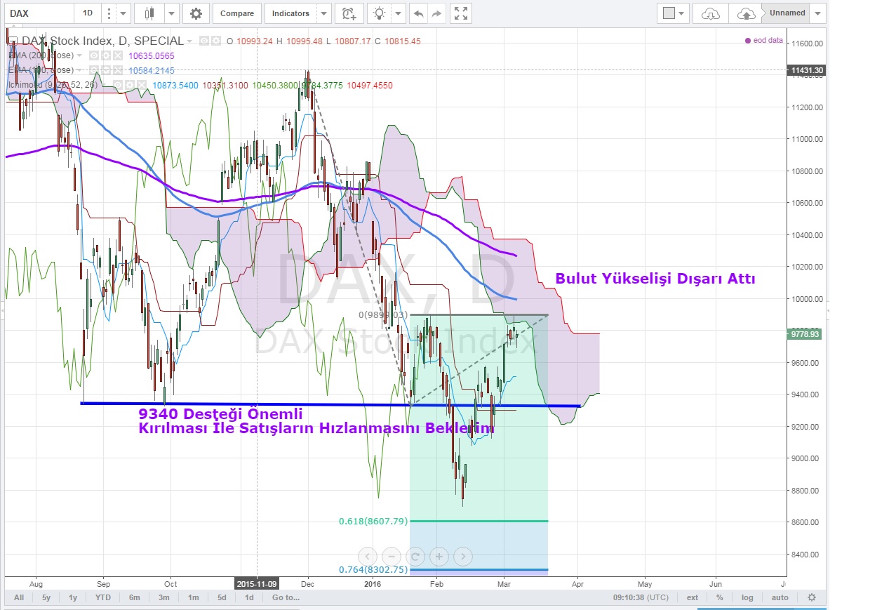 Yükselişin buluta takıldığı ve hızının kesildiği görülüyor .Burada 9340 önemli destek ve kırılması durumunda satışlar hızlanarak 8610 seviyeli ilk hedefe ilerleyebiliriz .Bir sonra ki hedef ise 8320