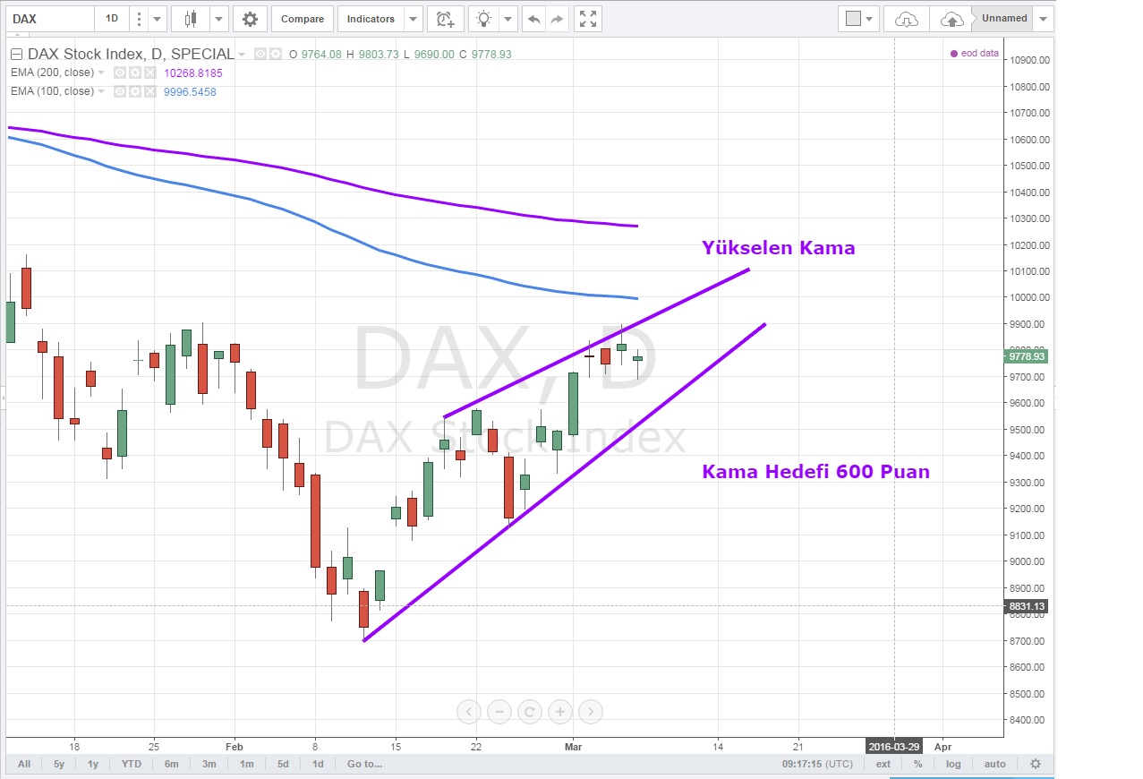 Yine günlük grafiklerde yükselen kama oluşturan endeksin kamayı kırması durumunda 600 puanlık bir hareketi beklenebilir