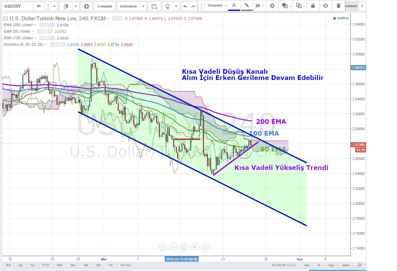 Kısa vadeye indiğimizde ise düşüş trendi oluşturan paritede trend kırılmadığı sürece alıma geçmek için erken.Kanal pariteyi kısa vadede de baskılıyor