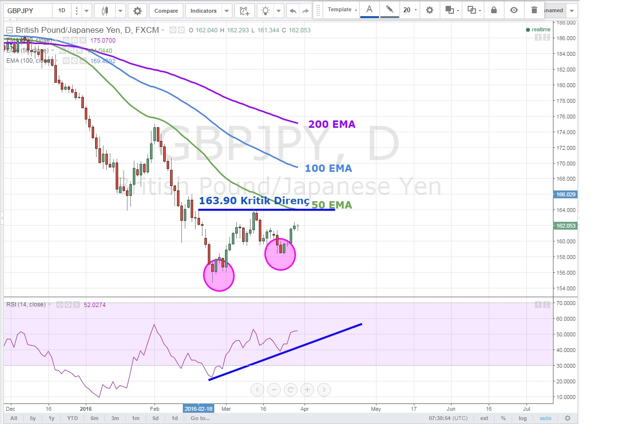 Günlük grafiklerde ikili dip yapan ve yeni dipte gittikçe kuvvetlenen parite 163.90 direnci üzerinde hareketini sertleştirebilir