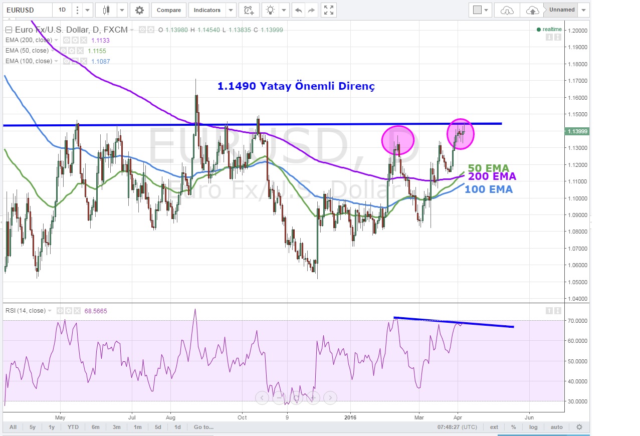 1.1340 seviyesi altında EURUSD 'de kısa pozisyon almak iyi bir tercih olabilir