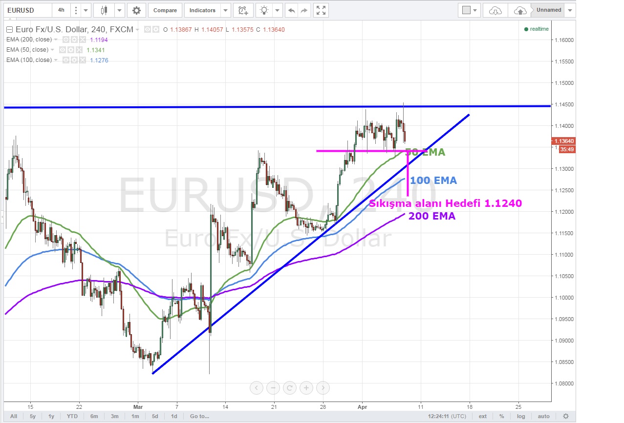Daha kısa vadede ise sıkışma alanı içerisinde bulunan EURUSD 1.1340 seviyesini aşağı kırarsa formasyon hedefi olarak 1.1240 seviyesi gündeme gelecek