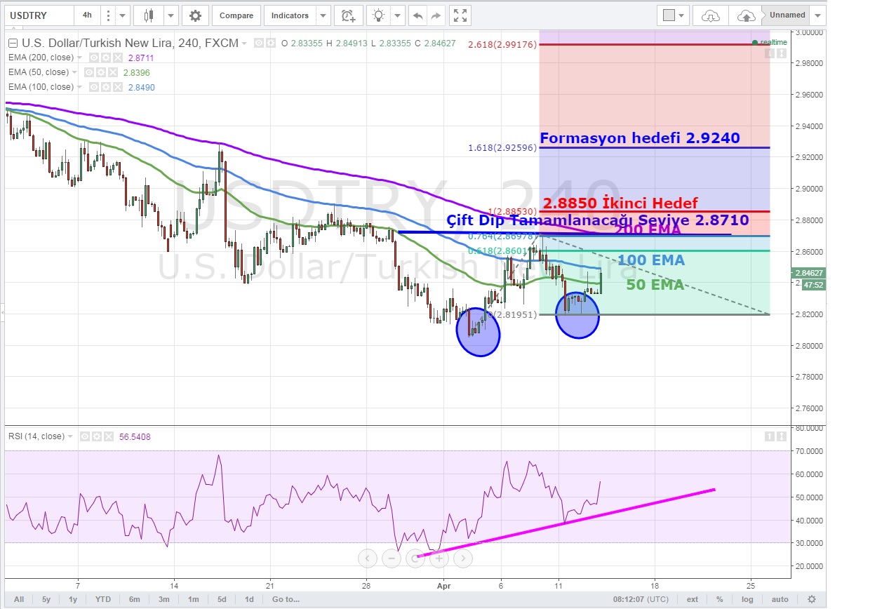 Daha kısa vadeye indiğimizde çift dip oluşturan parite için kısa vadeli taban desteği 2.8190 seviyesinde