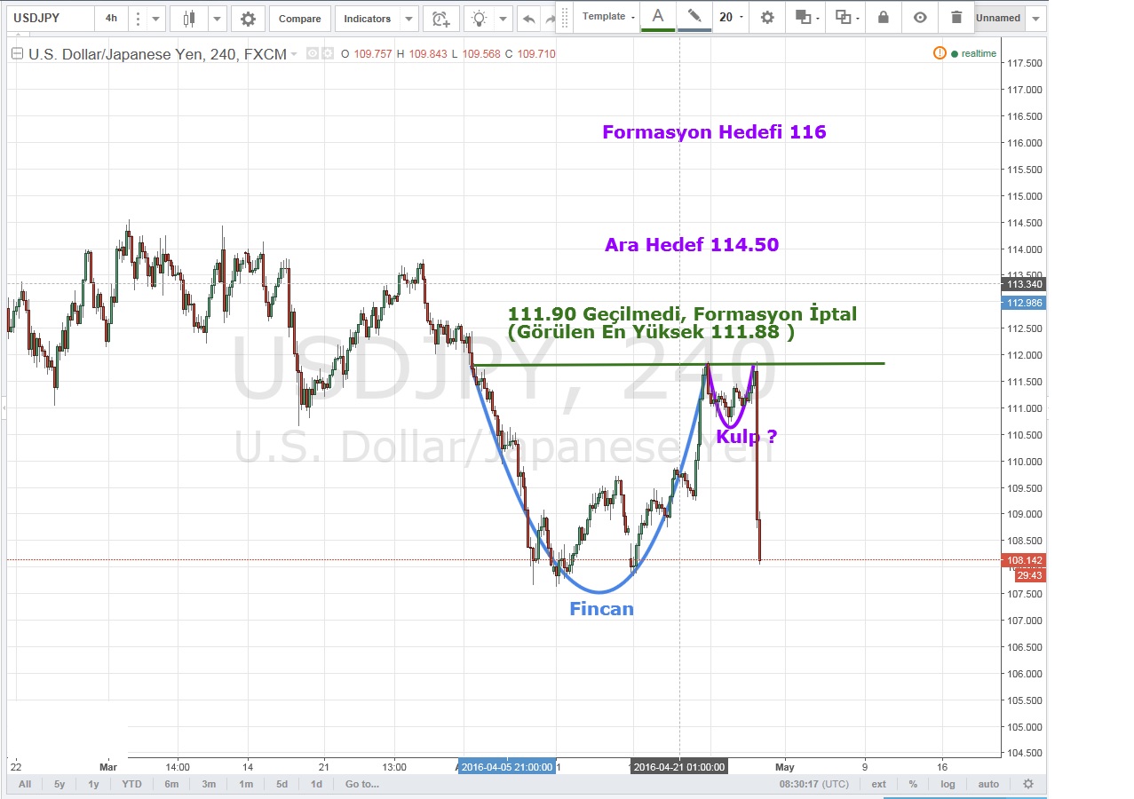 Toplantı sırasında en yüksek 111.88 seviyesi görülen paritede buradan görülen sert satışlar ile birlikte düşüş başladı. Biz de herhangi bir pozisyona girmeden kenardan izlemeye devam ediyoruz