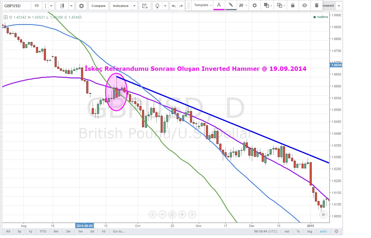 Cevap : İskoç referandumunun ertesi günü yani 19.08.2014 tarihinde. O gün 1.6524 yükseğini görüp oluşan Cable, bir daha o seviyeleri göremedi ve o tarihten beri kalıcı olarak düşmekte