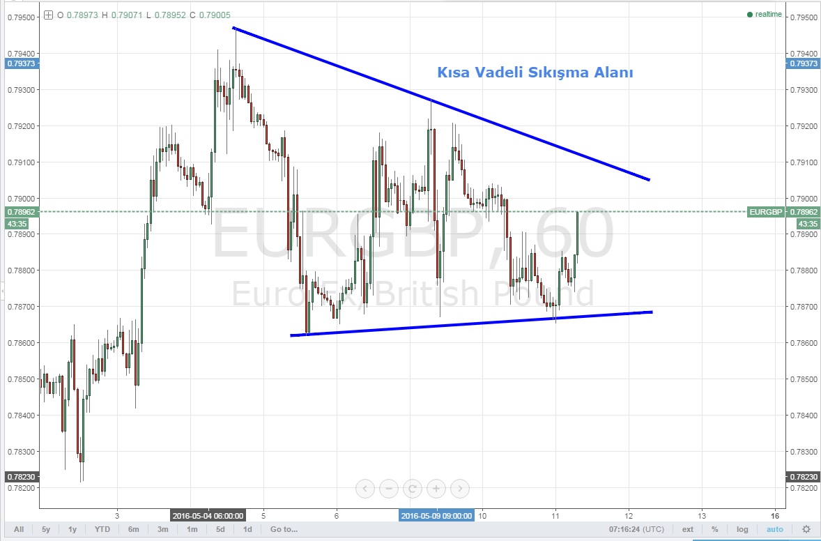 Kısa vadede paritenin sıkışma alanı oluşturduğunu görüyoruz