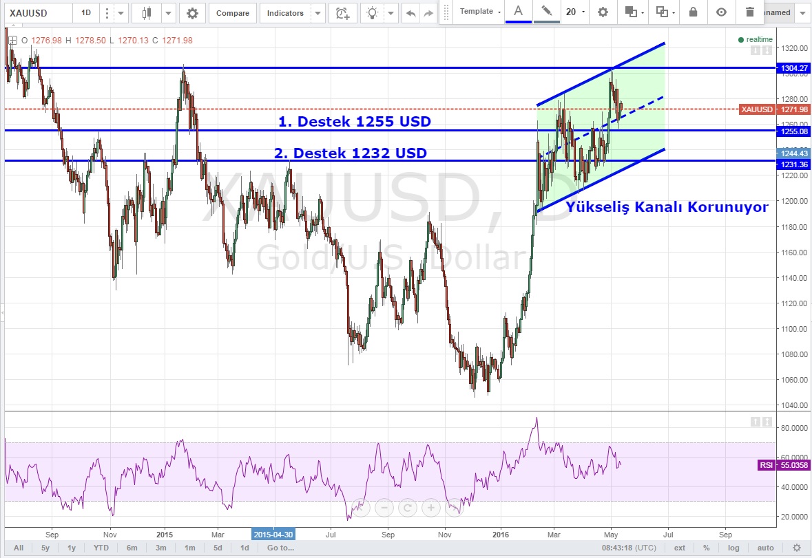 Günlük grafiklerde yükseliş kanalı oluşturan sarı metal için destekler