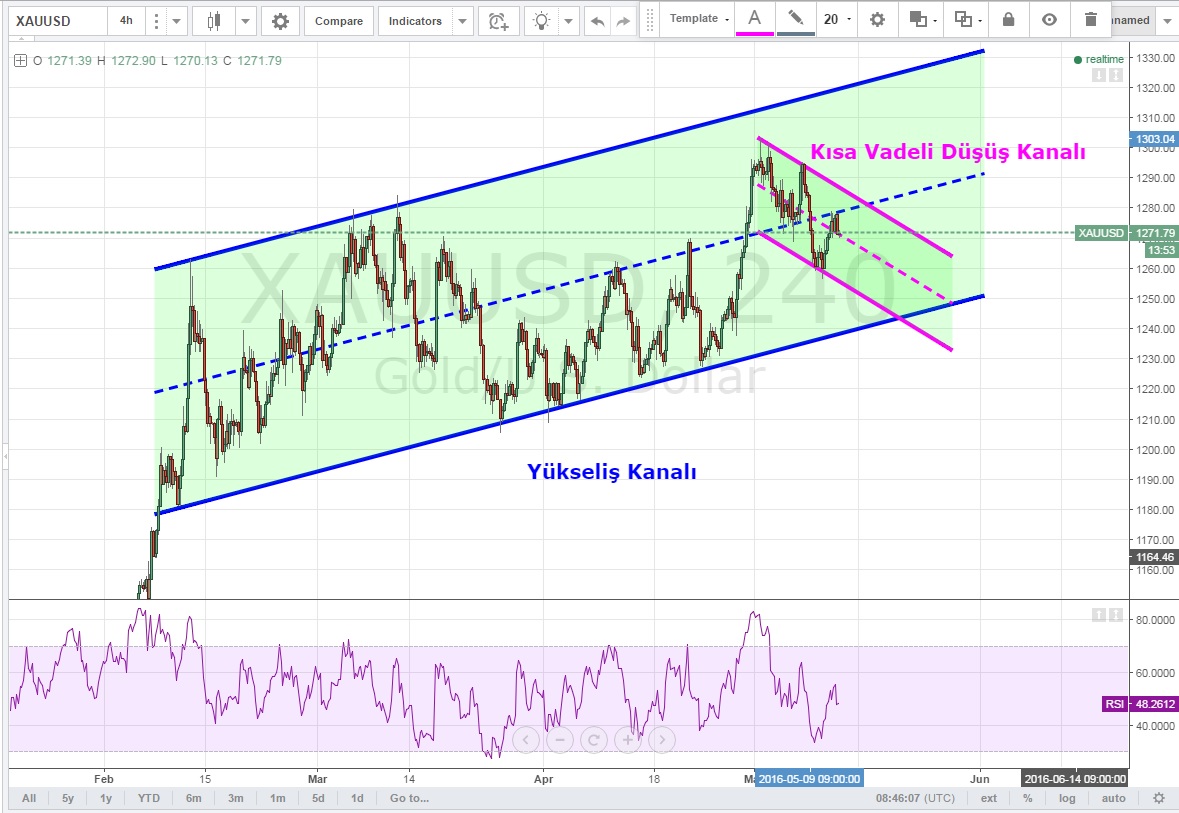 Daha kısa vadede ise kısa bir düşüş kanalı da oluşturan XAUUSD 'nin güç toplamaya ihtiyacı olduğu ve kalan kırılmadan pozisyona girmenin erken olabileceği sinyali var