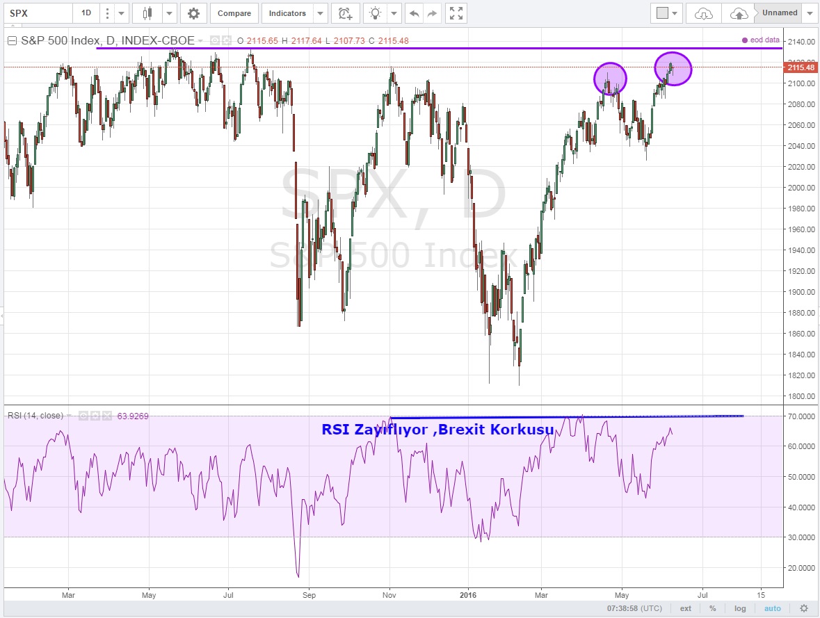 ama hepsinden önce en kısa vadede yaklaşan Brexit korkusu ile birlikte risk-off 'a geçmesi muhtemel piyasalarda, amiral gemisi S&P 'de boğaların gücü tükeniyor.