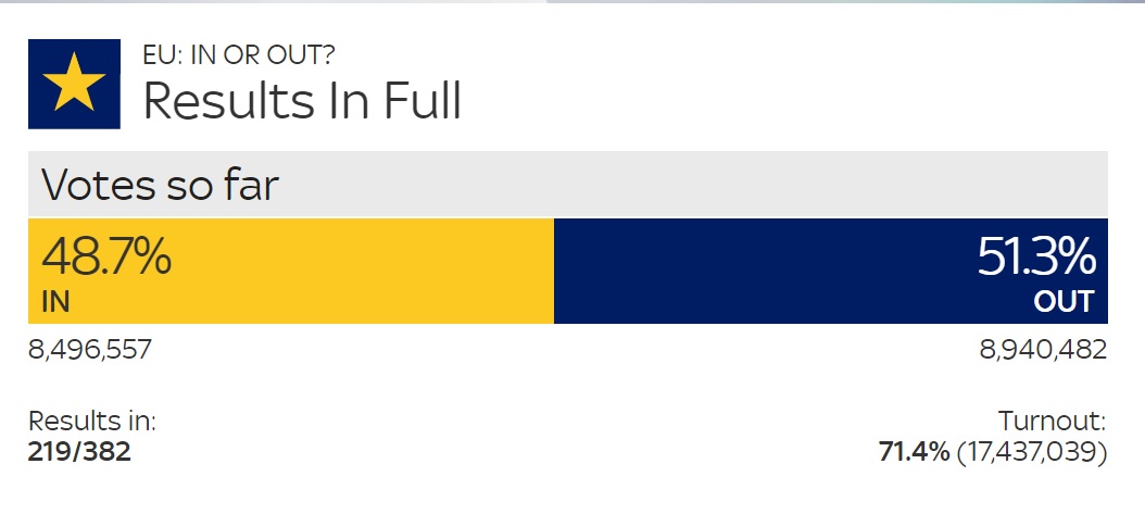 Leave tarafı hala önde %48.7 ve %51.3