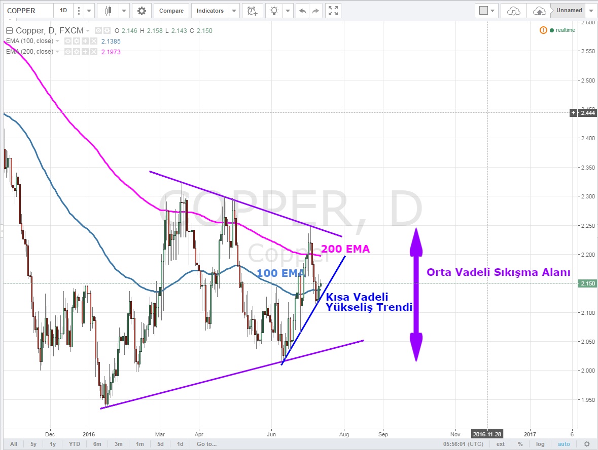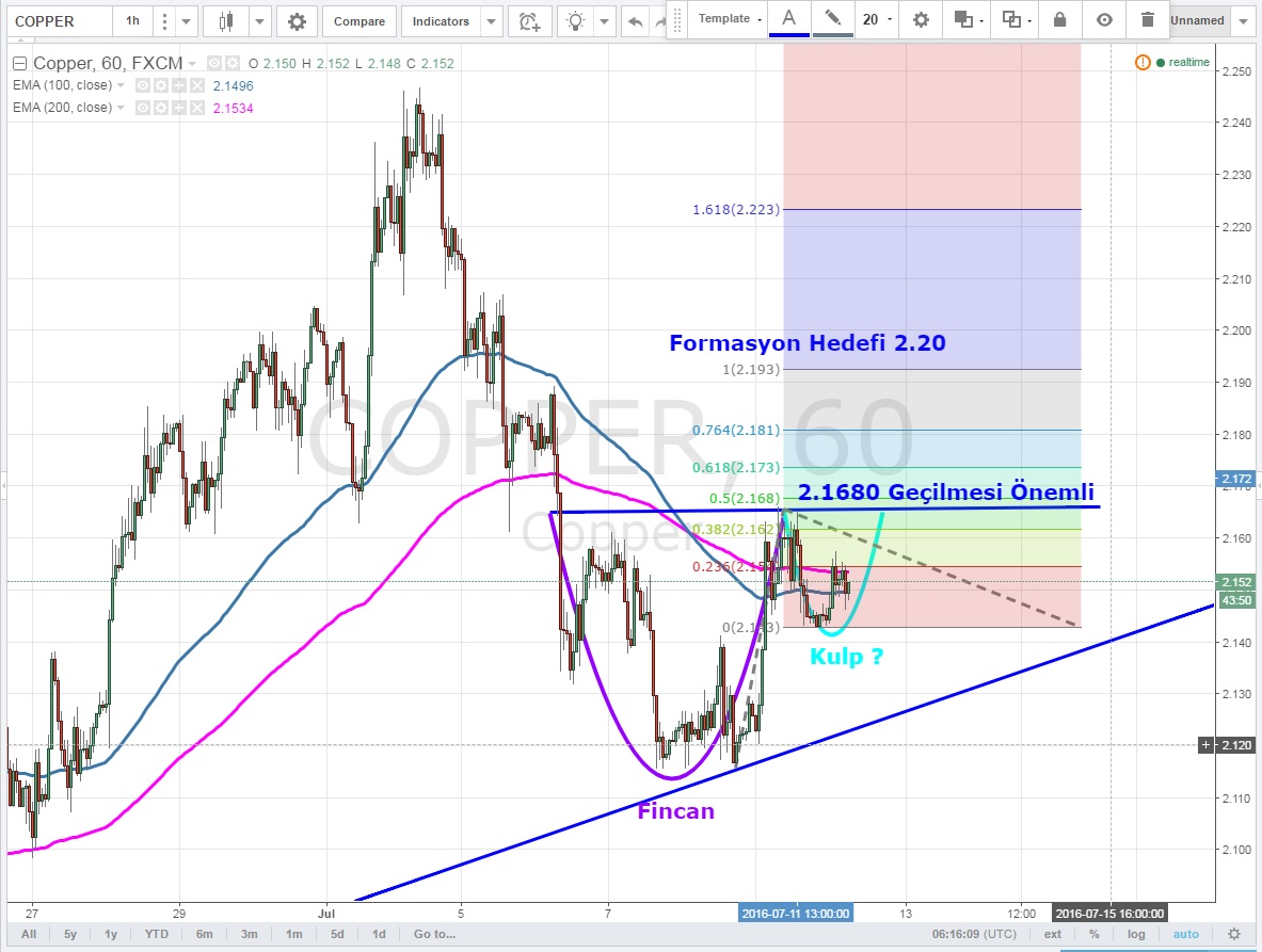 Daha kısa vadede ise Fincan -Kulp oluşturmaya hazırlanan Bakır vadelileri için 2.1680 seviyesinin kırılması önemli