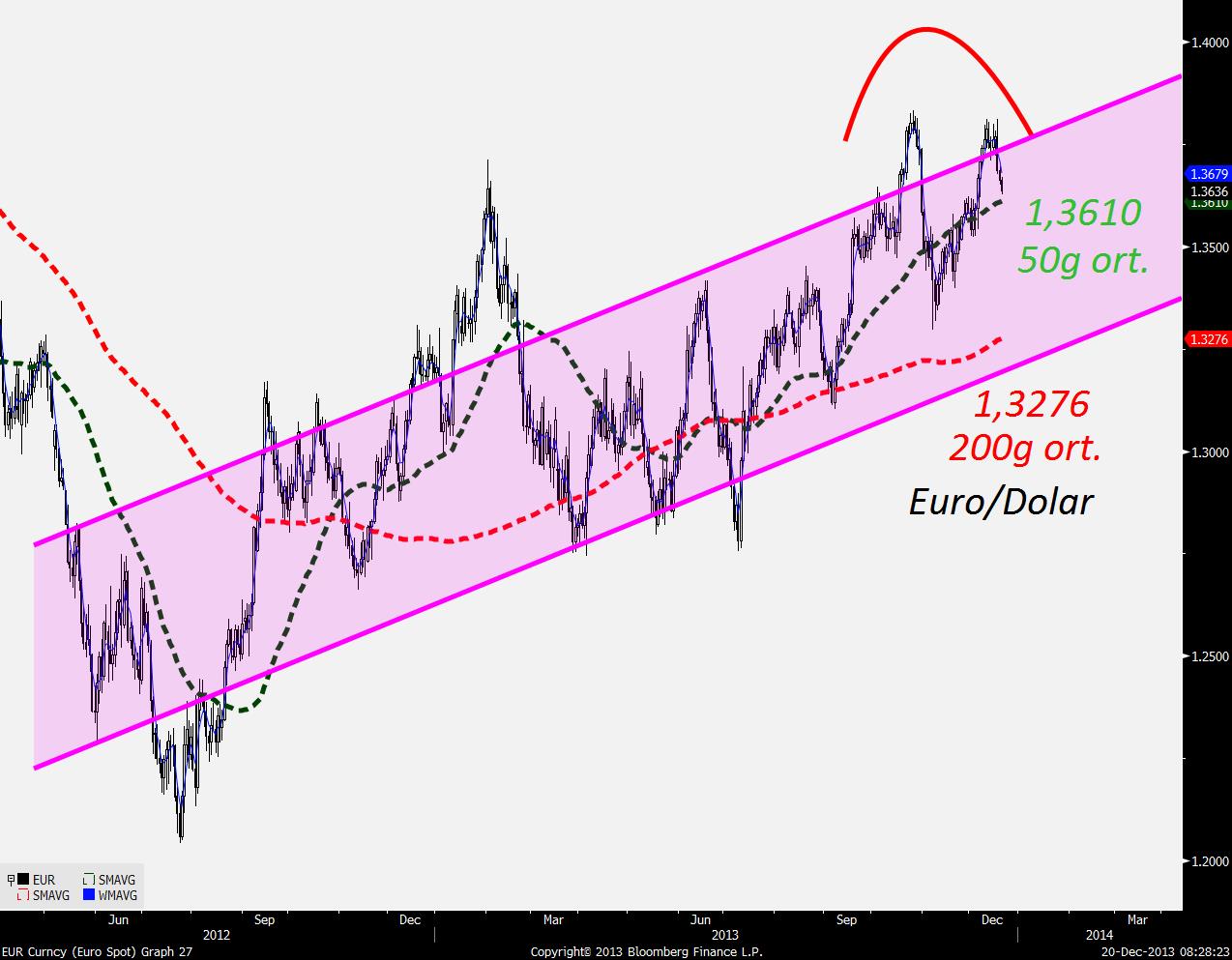 Son gelinen seviye 1,3636 ve artık 50 günlük ortalamaya çok yakınız. 1,3610'dan geçen bu desteğin kırılması için şu an bir sebep yok. Buranın aşağı geçilmesi için ABD kaynaklı tapering fiyatlamasının daha da sertleşmesi gerekiyor. Son turda yukarı riskine dikkat çektiğimiz euro 1,3850'ye yaklaştıktan sonra geriliyor. Genel yaklaşımım euronun düşmesi yönünde ancak bunun için zamanlama doğru olmayabilir ve asıl senaryoda Avrupa MB'nin daha fazla genişleme yapması gerekiyor.