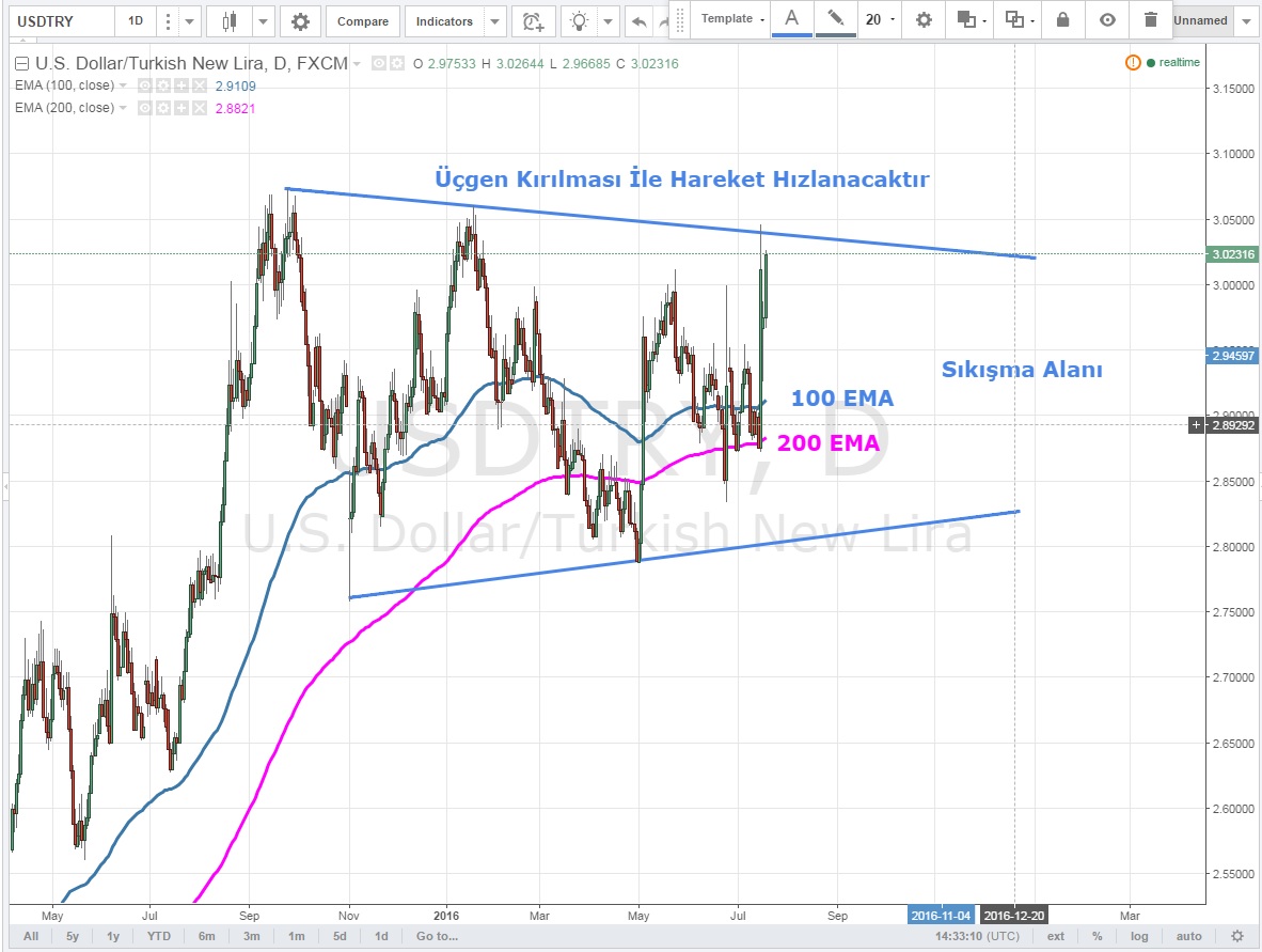 Günlük grafiklerde ise sıkışma alanını kırmak üzere .3.0390 seviyesi kırıldığında sırası ile