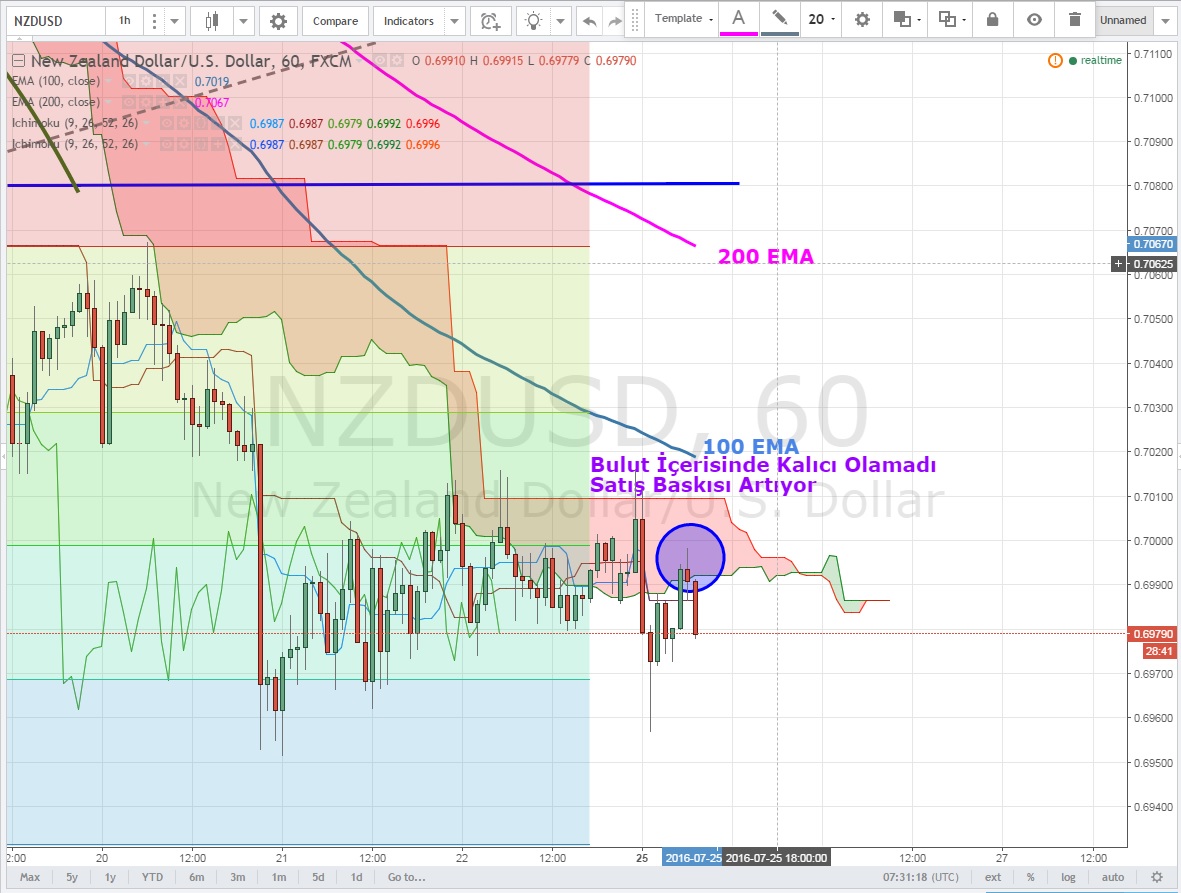 Bu noktadan sonra geri çekilmesini yapan parite kısa vadede bulut içerisine girdiğinde satışlar arttı ve ayılar fiyatı tekrar bulut altına itmeyi başardı