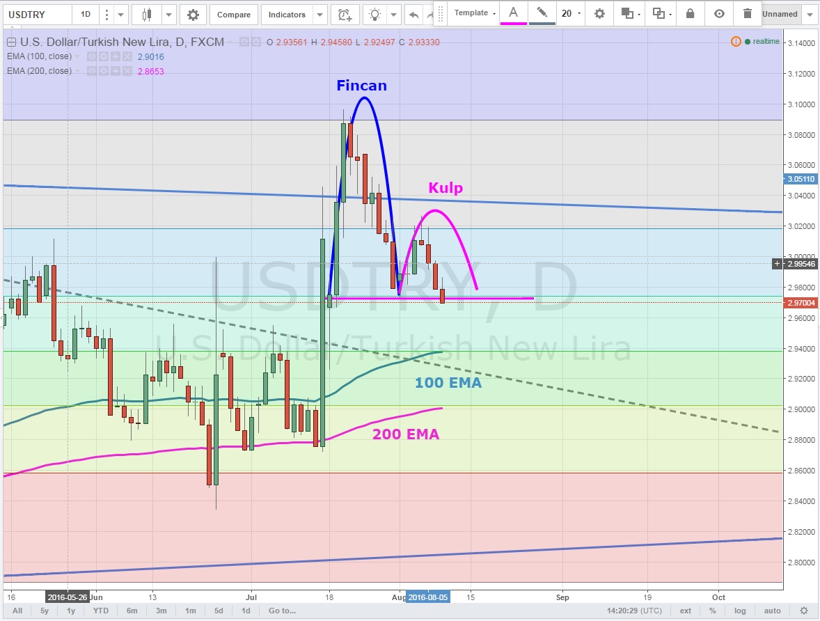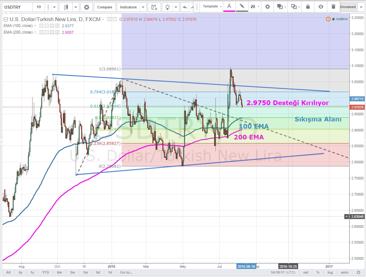 USDTRY için daha önce konuştuğumuz sıkışma alanına geri dönen parite kritik 2.9750 desteğini aşağı kırmaya çalışıyor