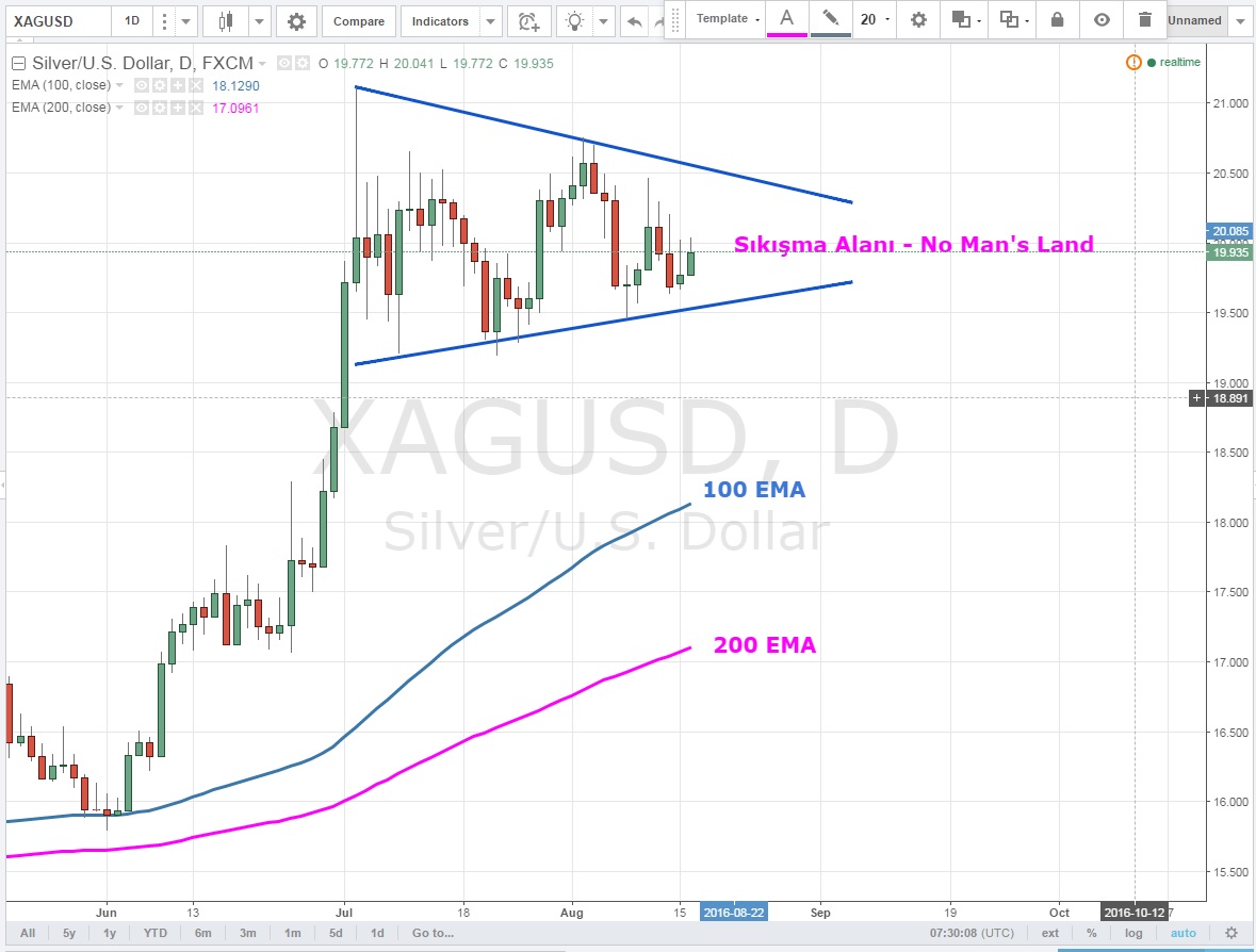Şu an XAGUSD tıpkı XAUUSD gibi kimsenin oyun alanında değil ve işlem için iyi bir fırsat sunduğunu söylemek zor
