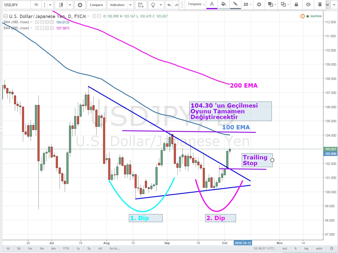 Her ihtimale karşı riski azaltmak isteyenler trailing stop seviyelerini 100 seviyesinden 101.60 'a çekebilir