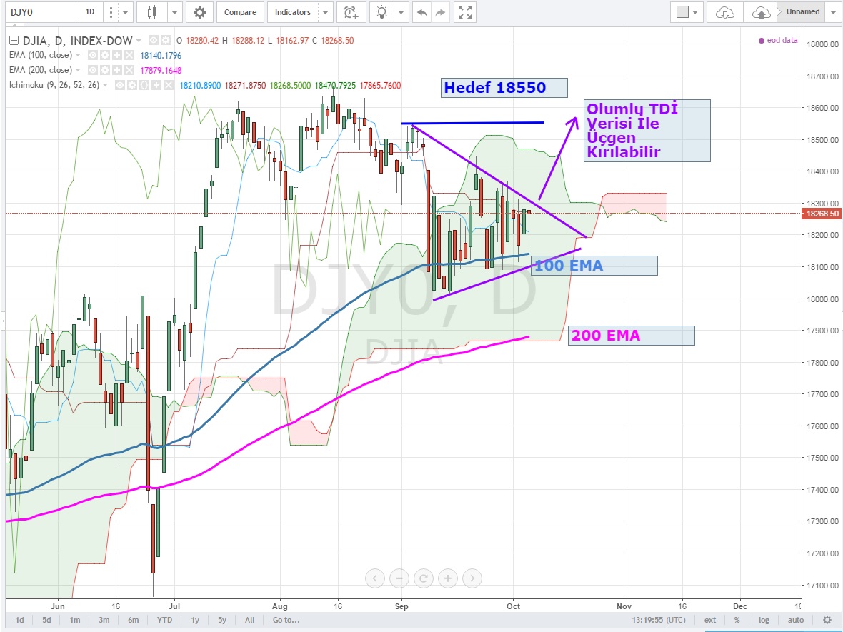 DJIA Futures için konuştuğumuz sıkışma alanı kırıldığında 18550 seviyesi gündeme gelecektir