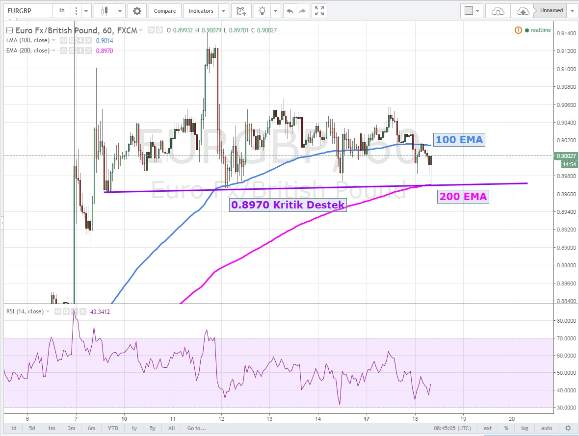 Daha kısa vadede ise enflasyon verilerine rağmen şu an için 200 EMA 'da ki 0.8970 desteğinde tepki veren parite burayı kırması durumunda bir sonra ki desteği yaklaşık 170 pip aşağıda görünmekte