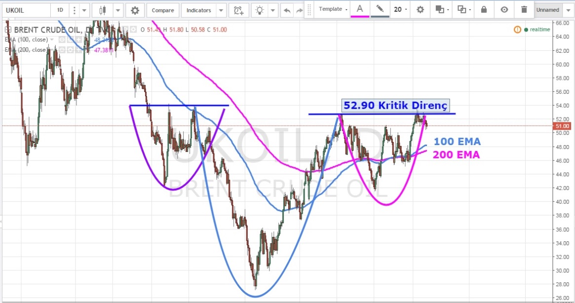 52.90 üzeri kapanışlar yapmadığı sürece de orta vadede Brent için kalıcı bir yükselişten bahsetmek pek mümkün görünmüyor