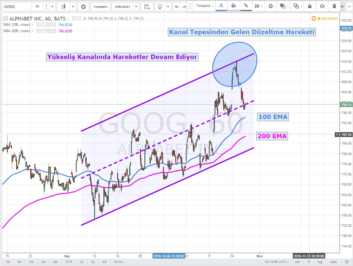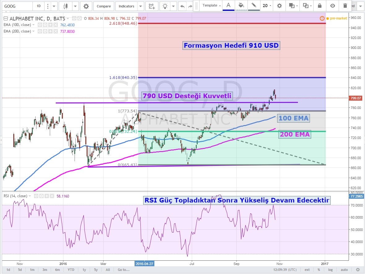 Google 'da 790 USD üzeri fiyatlar daha kısa vadede ise yükseliş kanalı dibi boğalara destek konumunda