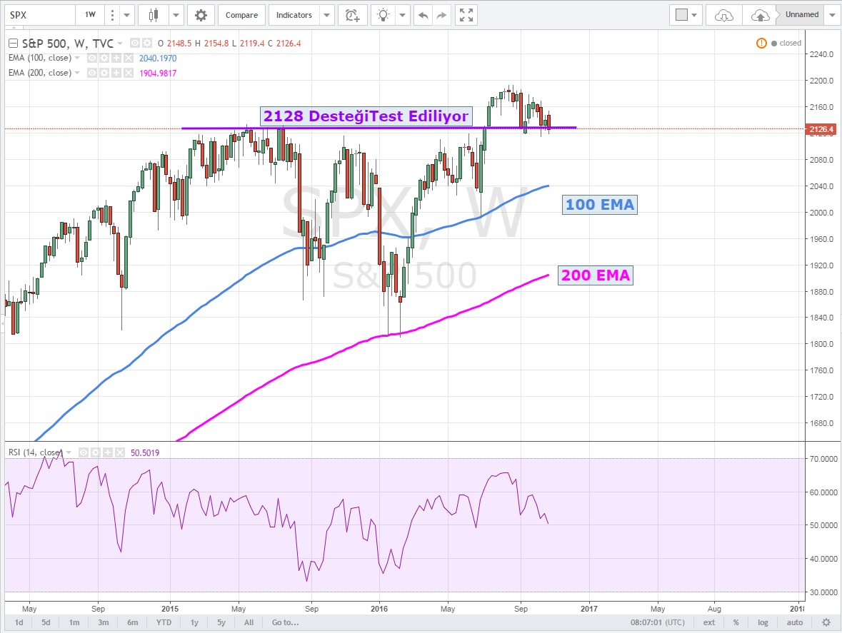 Haftalık grafiklerde kritik 2128 desteği test ediliyor .Kırılması korkuyu tetikleyecektir