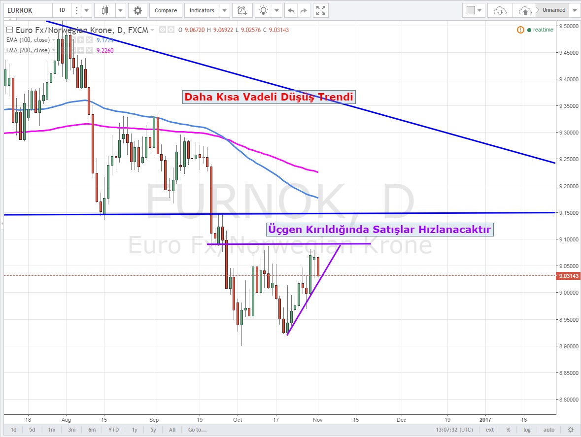 Bu gelişmeler eşliğinde EURNOK 'u teknik olarak incelersek