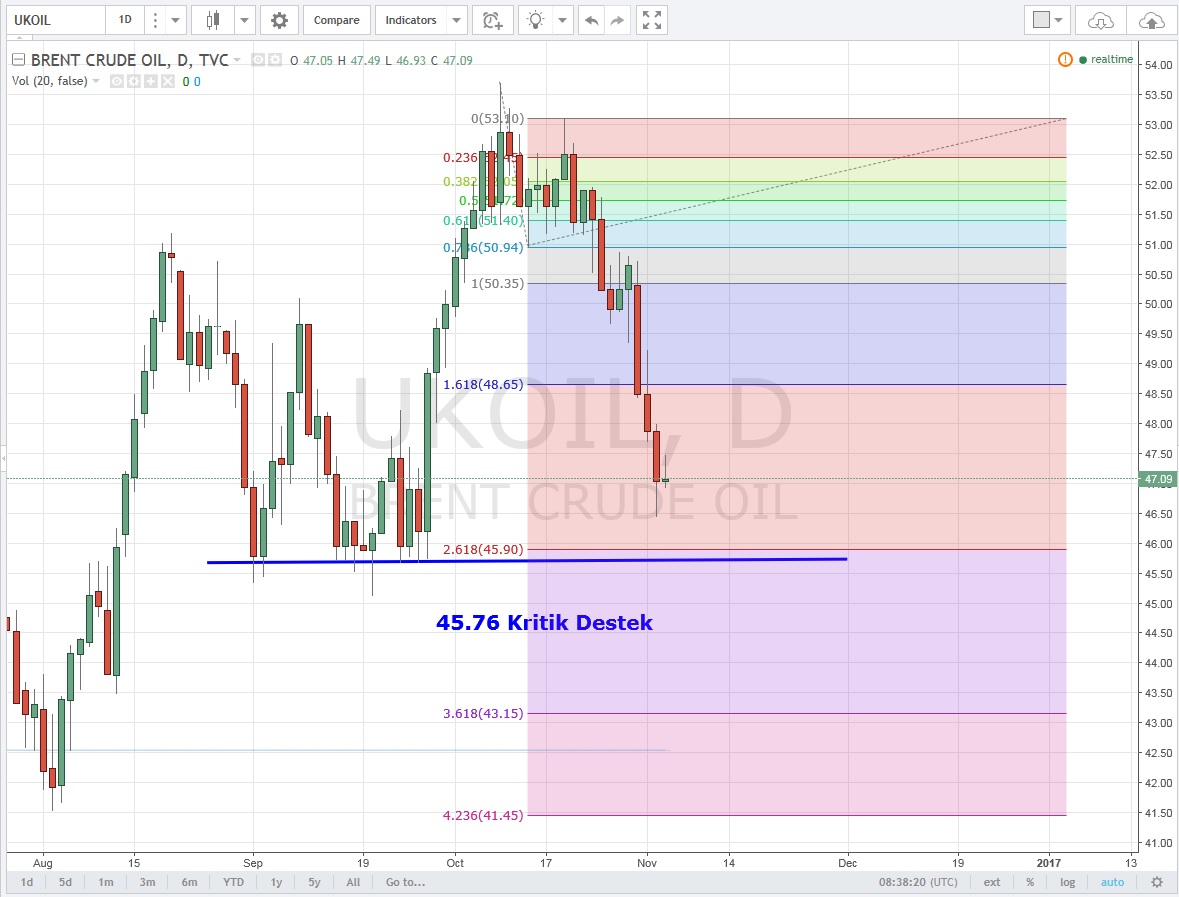 Brent 'de ise 45.76 kritik destek ve orta uzun vadeli yükseliş için bu desteğin tutması gerekli