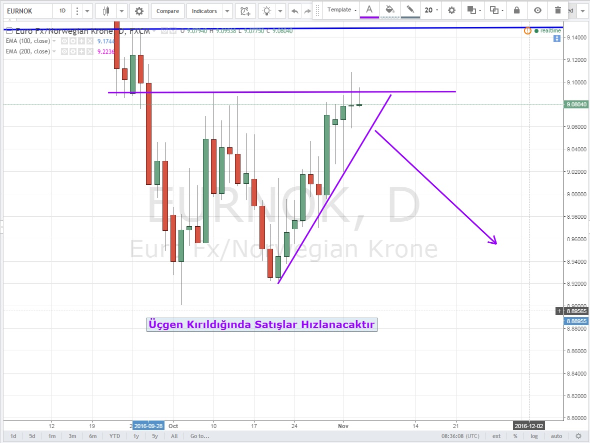 Petrol trade etmesi en zor enstrümanlardan birisi ve spekülatif hareketlere gebe .Bunun için olası bir dönüş için EURNOK paritesini takip etmeyi uygun buluyorum