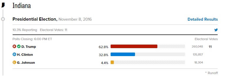 Indiana 'da sandıkların % 10.3 'u açıldı