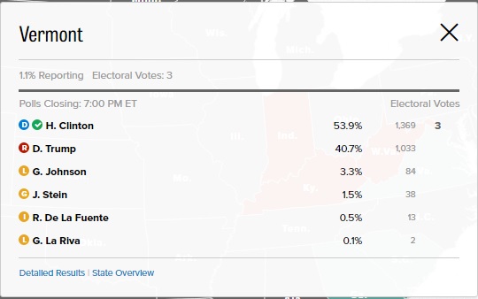 Vermont 'da şu ana kadar Clinton üstünlüğü var