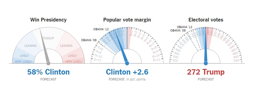 Başkanlık seçimi kazanma ihtimali (Win Presidency ) olarak % 58 verilen Clinton yüzdesi daha önce % 74 'lerdeydi