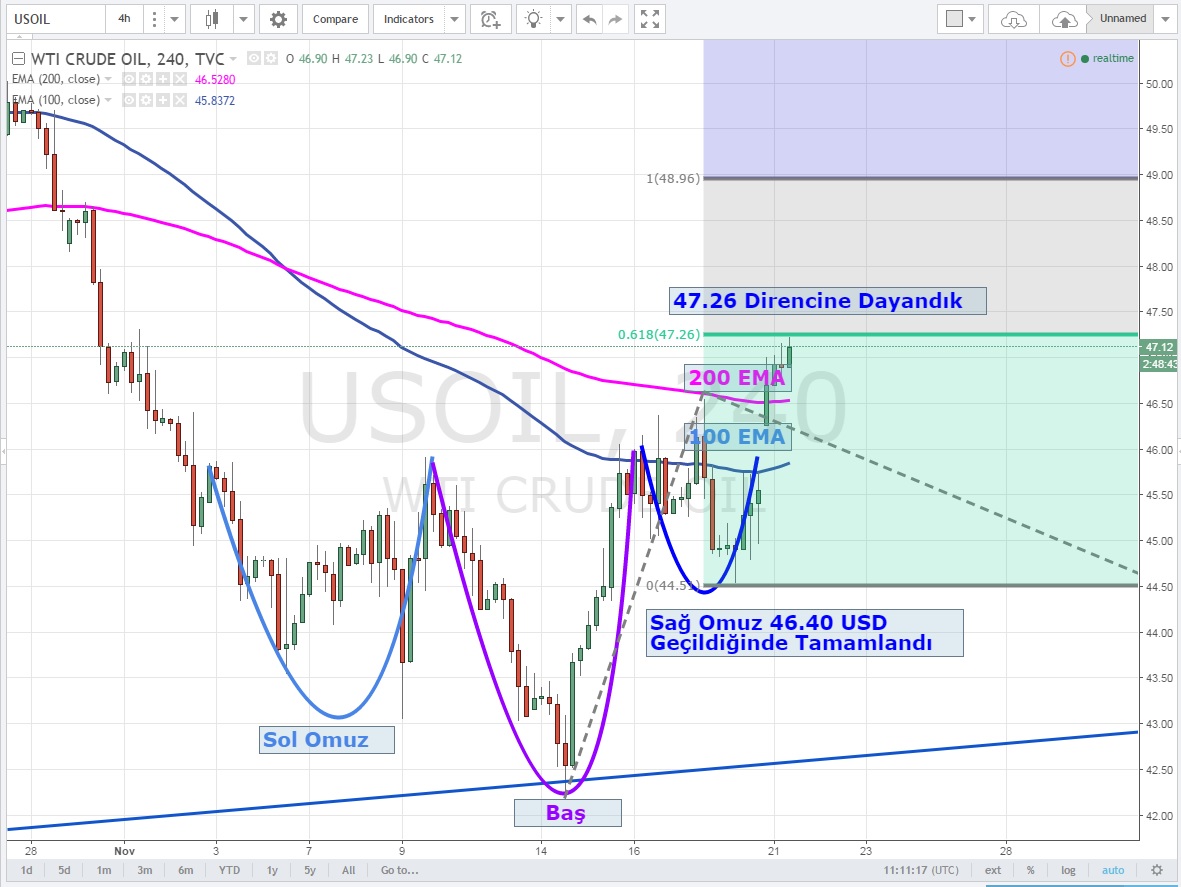 Günlük grafiklerde 46.40 seviyesinin geçilmesi ile tamamlanan TOBO ilk hedefi olan 47.26 direncine dayandı