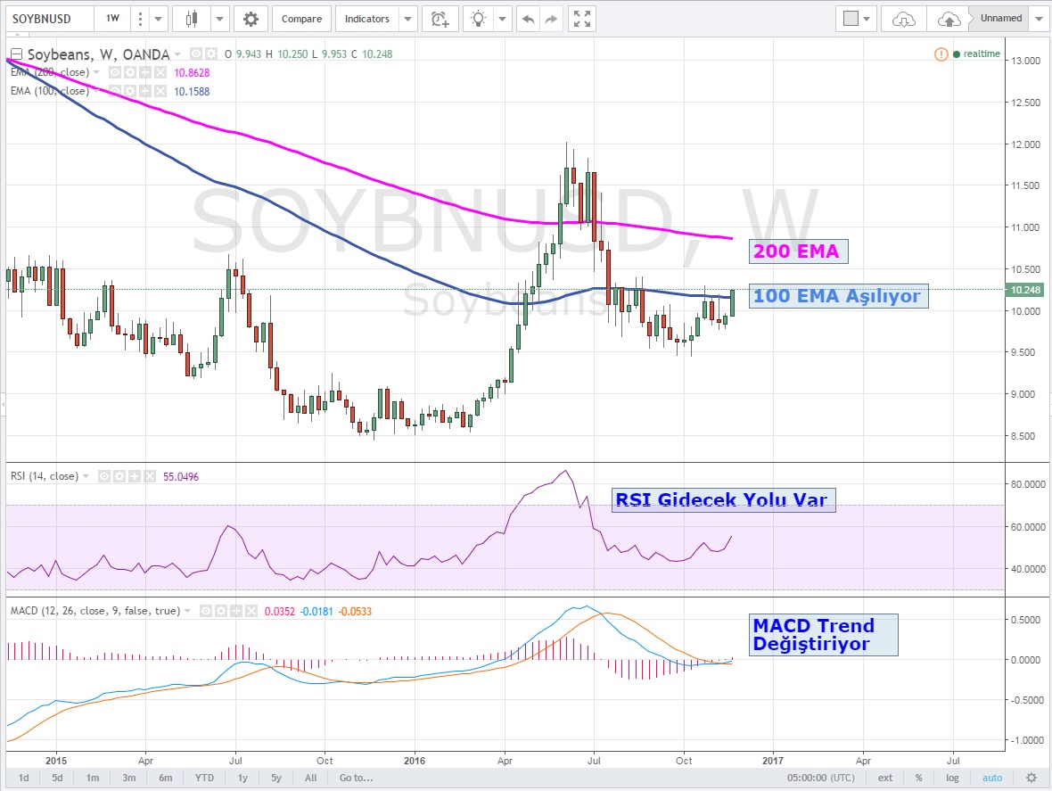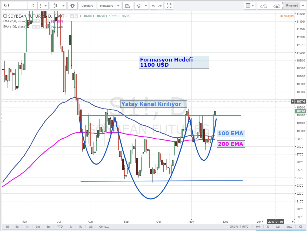 Bu doğrultuda Futures piyasalarda işlem gören Soybean kontratlarına teknik olarak baktığımızda