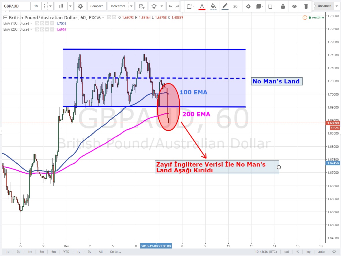 GBPAUD için sabah konuştuğumuz yatay kanal beklenti altı gelen Ekim ayı İngiltere İmalat Verileri ile ( (%-0.9 vs %0.2 ) aşağı kırıldı