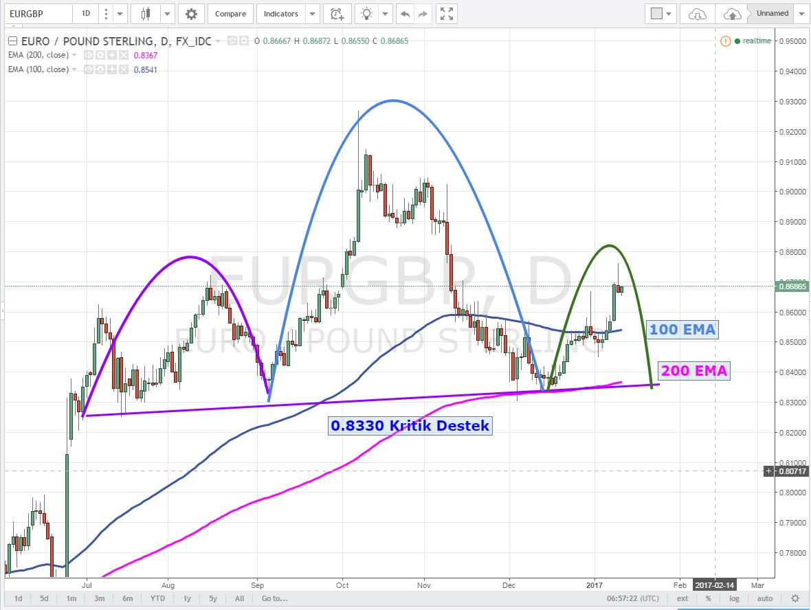 Kritik destek 0.8330 seviyesi ve kırılması ile formasyon tamamlanarak yeni satıcılar oyuna girerek pariteyi hızlıca daha aşağılara itmesini beklerim