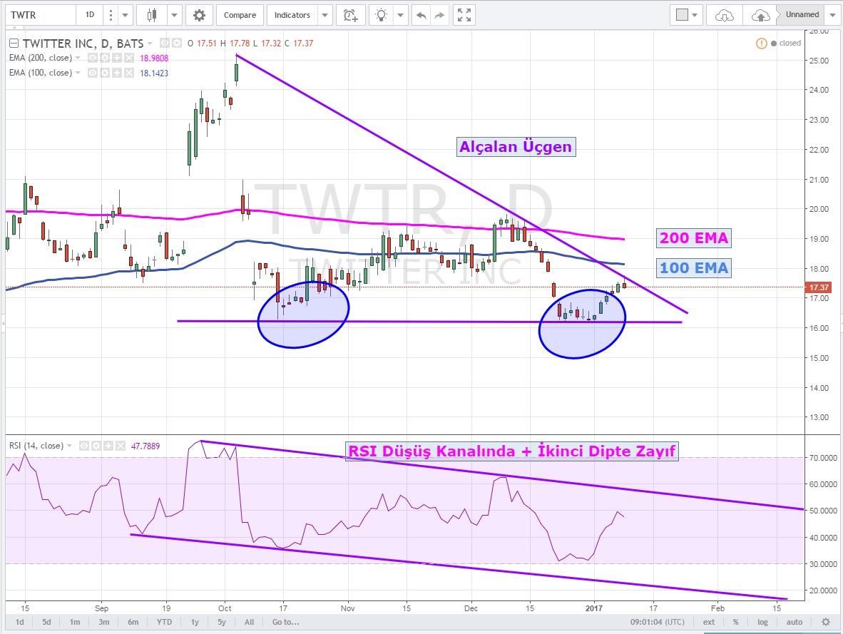 Teknik olarak Twitter hisse senedine baktığımızda ise