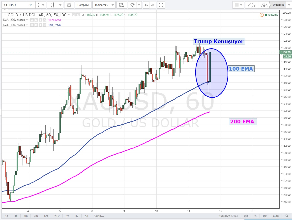 Donald Trump 'ın konuşması sırasında şu ana kadar Rusya 'ya yüklenmesi ile XAUUSD değer kazanmaya başladı